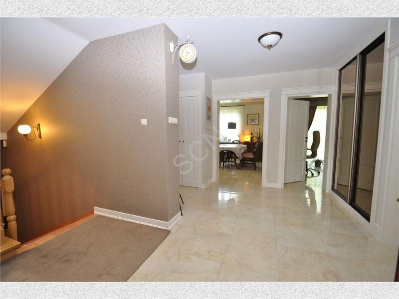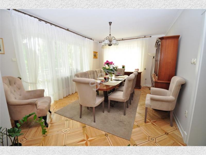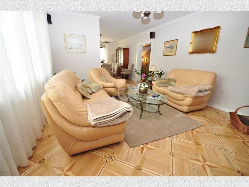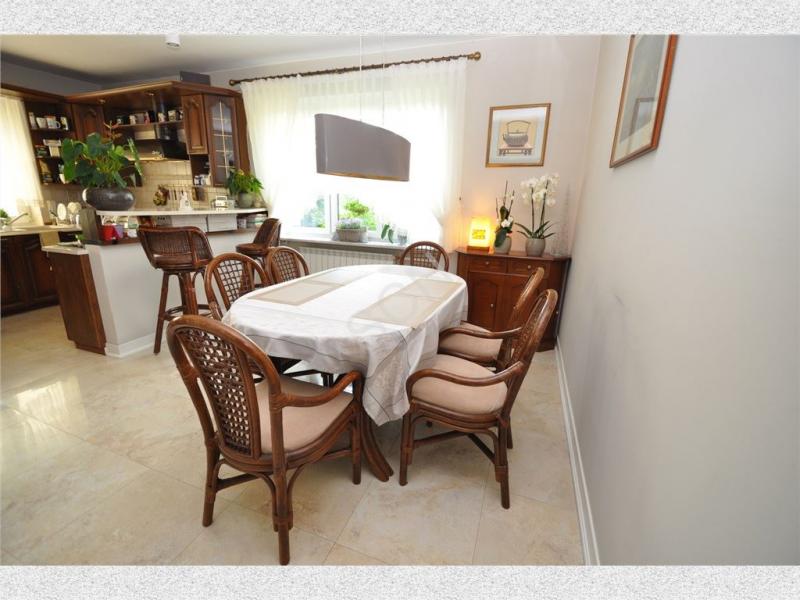 Na parterze znajduje się przestronny hall, jadalnia otwarta na salon z kominkiem o pow .36m2, z którego możemy wyjść na duży słoneczny taras, kuchnia z jadalnią o pow. 16m2, gabinet o pow.20 m2, sypialnia o pow.16 m2 oraz łazienka. Na piętrze znajduje się drugi salon z kominkiem o pow. 24m2, 3 duże sypialnie o pow. 20 m2 każda i jedna z balkonem o pow. 16 m2 oraz pokój kąpielowy.