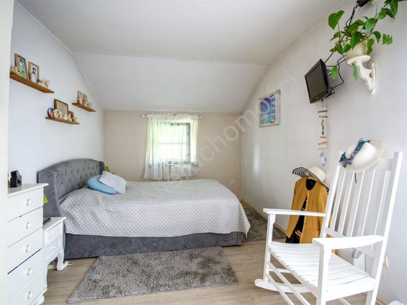 Na piętrze znajduje się część prywatna z sypialniami, w tym sypialnia główna z garderobą i wyjściem na taras. Do dyspozycji są dwie łazienki jedna z wanną, druga z prysznicem. Dom posiada również piwnicę z garażem, pomieszczeniami gospodarczymi oraz pokojem hobby.