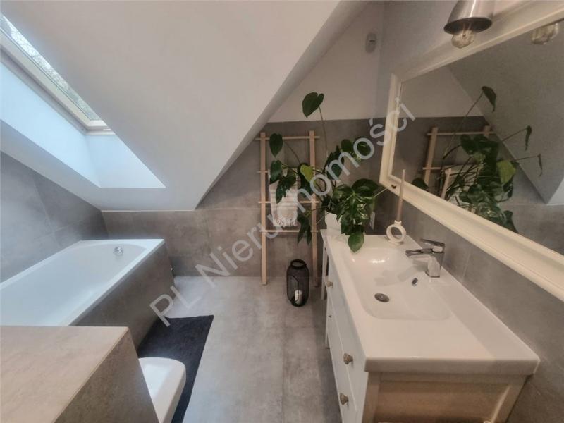 Na piętrze znajdują się dwie sypialnie, gabinet, garderoba i łazienka z wanną.