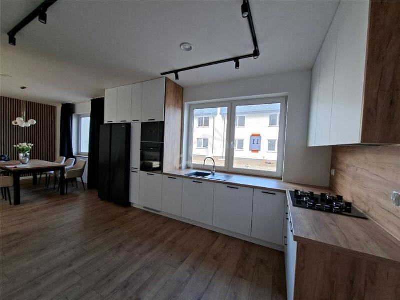 Parter: wiatrołap , widna kuchnia z zabudową i wyposażeniem (lodówka,okap,piekarnik,zmywarka i płyta gazowa) i łazienka.