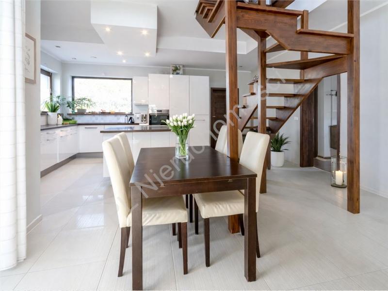 Niezwykle atrakcyjnym elementem nieruchomości jest niezależne mieszkanie o powierzchni 42 m, położone nad garażem. Z apartamentu prowadzi drewniany taras z pięknym widokiem na ogród, który stanowi idealne miejsce relaksu. Przestrzeń ta może pełnić funkcję mieszkania dla gości, biura, pracowni lub strefy dla dorastającego dziecka.