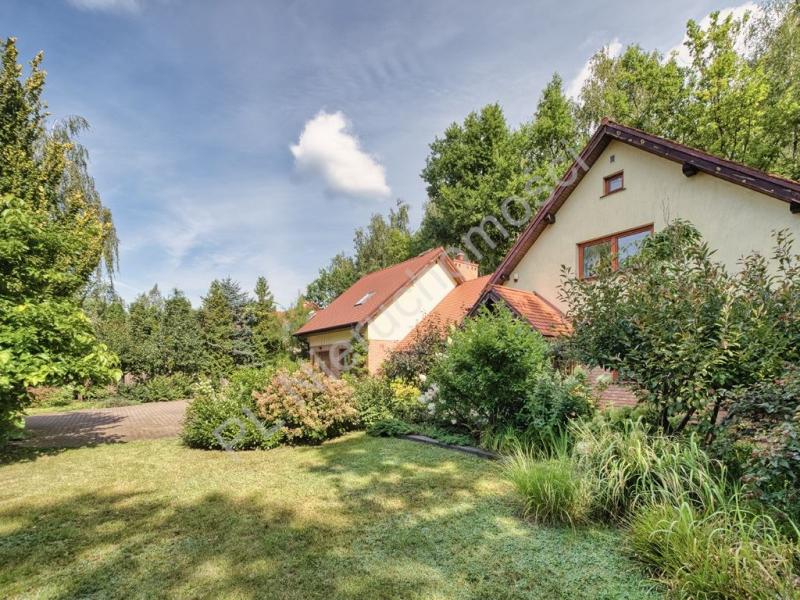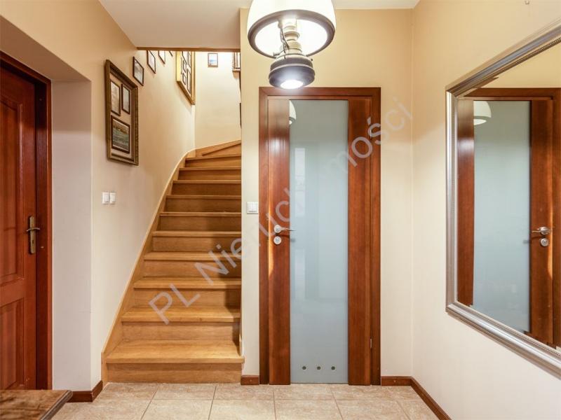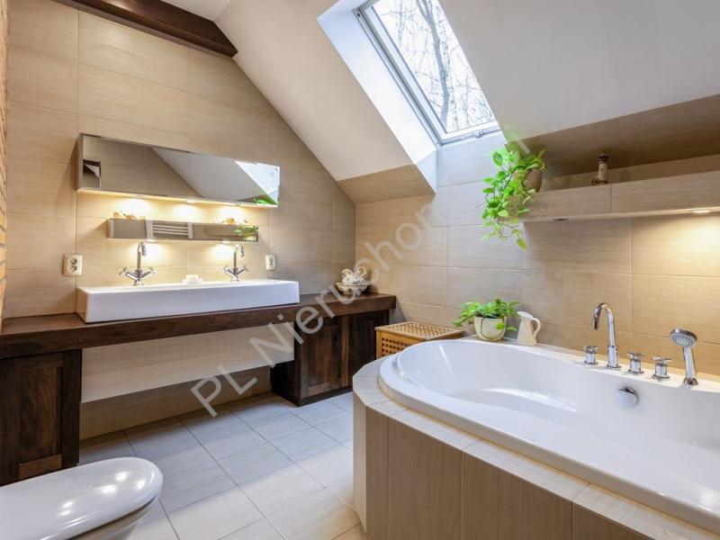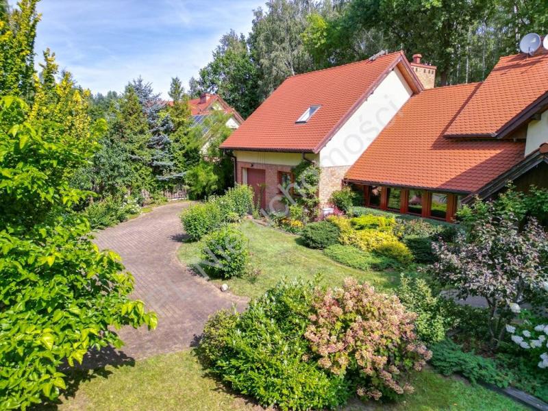 Na piętrze dwie sypialnie każda po około (16m2), garderoba (8 m2), łazienka z wanną (8 m2). Dom zadbany. Wyposażony w centralny odkurzacz, alarm, światłowód, podłączony miejskiej wody i kanalizacji. Pompa głębinowa do podlewania ogrodu. Średnioroczne rachunki miesięczne za energię ok 650 zł, plus opłaty licznikowe woda/kanalizacja, śmieci i gaz do gotowania.