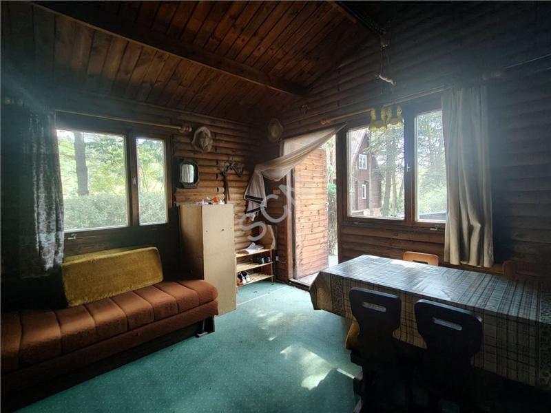 Na działce znajduje się domek letniskowy z bala, w którego skład wchodzą: